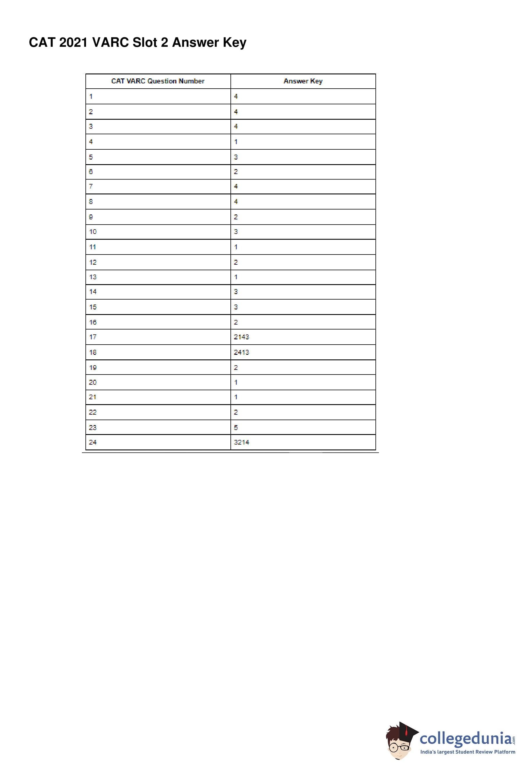 | CAT 2021 VARC Question Paper with Answer Key | Download PDF | Check solutions |