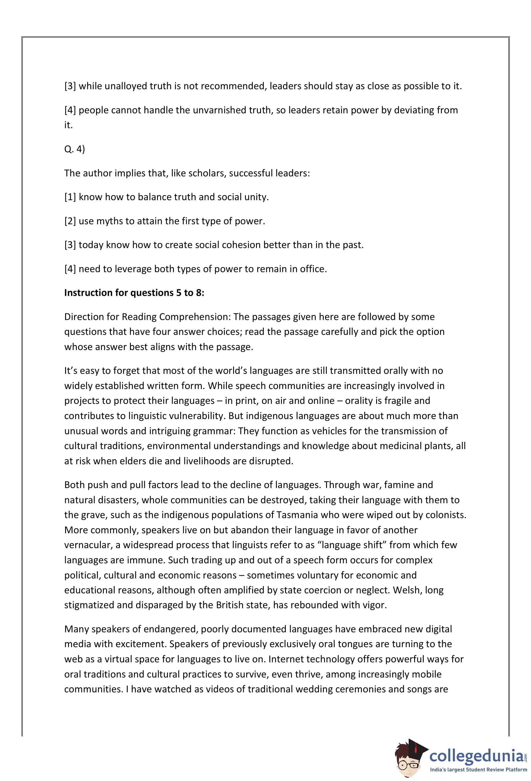 The passages given here are followed by some 5 questions that have four answer choices; read the passage carefully and pick the option whose answer best aligns with the passage. It’s easy to forget that most of the world’s languages are still transmitted orally with no widely established written form. While speech communities are increasingly involved in projects to protect their languages - in print, on air and online - orality is fragile and contributes to linguistic vulnerability. But indigenous languages are about much more than unusual words and intriguing grammar: