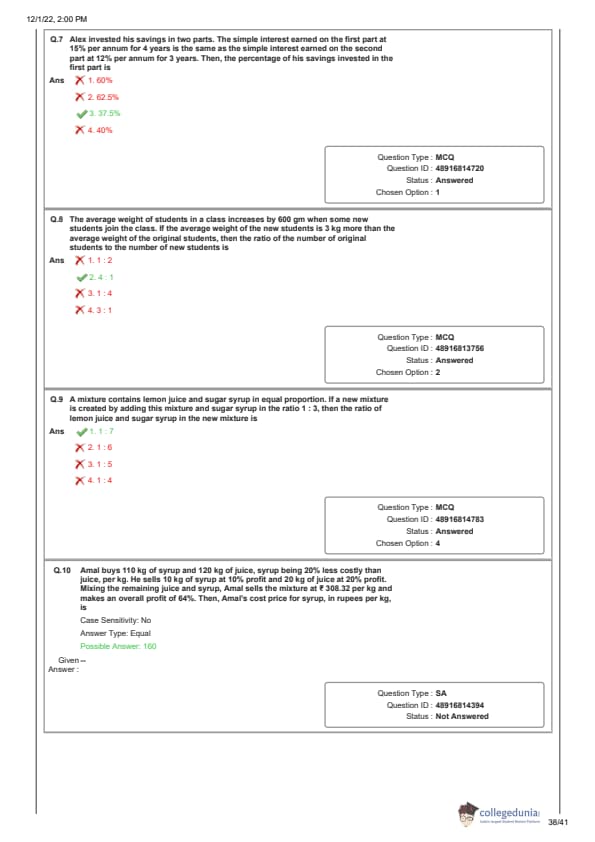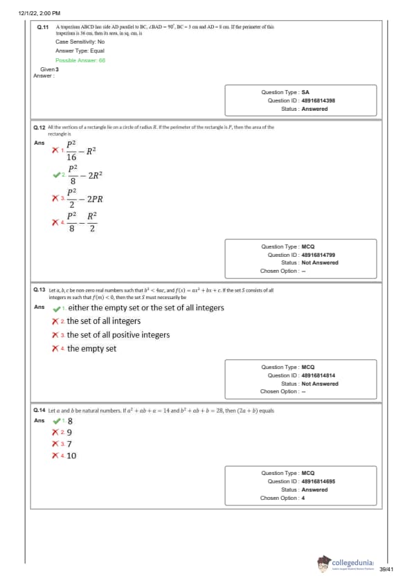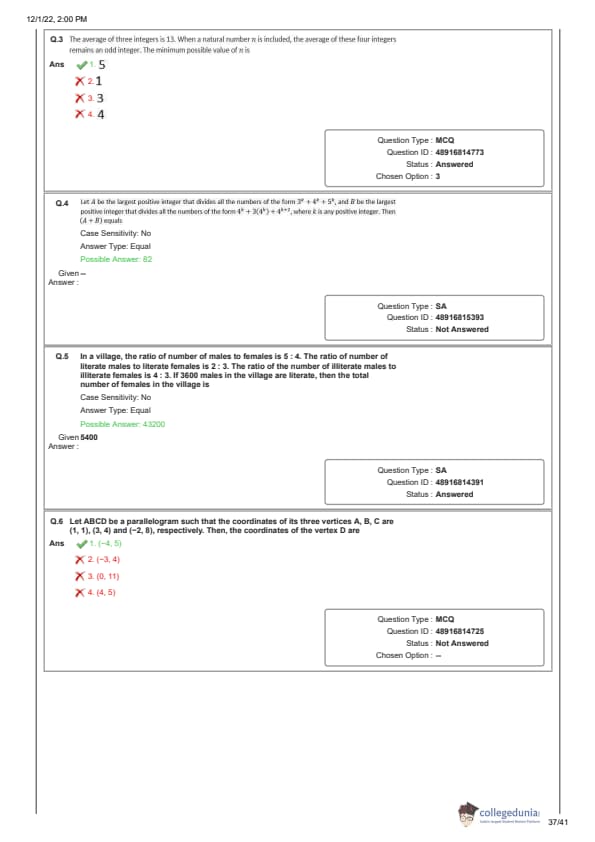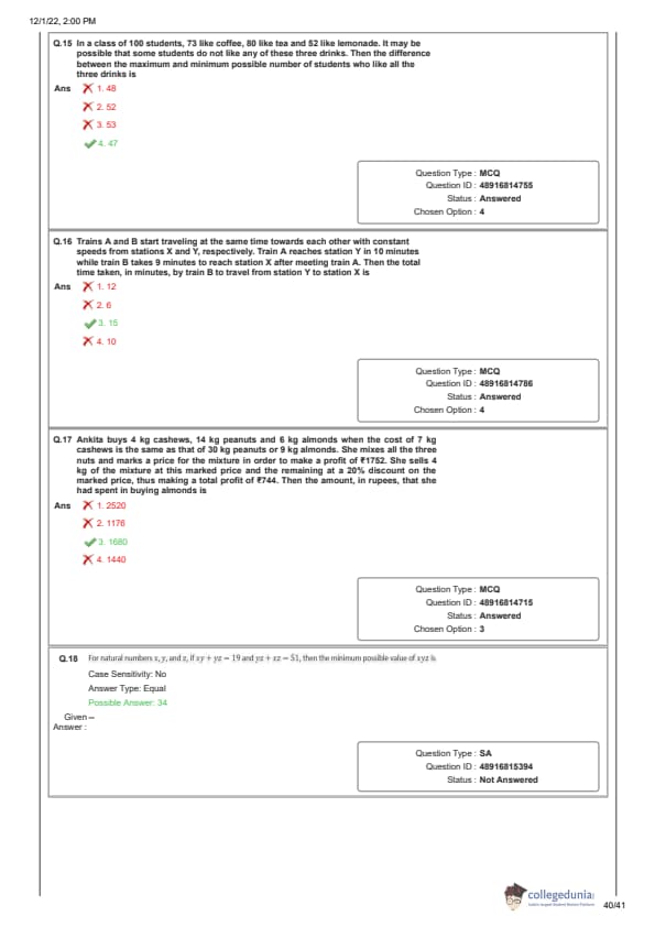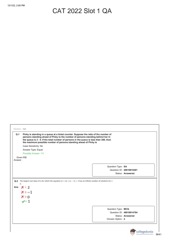 Candidates preparing for CAT 2025 can download CAT QA question paper with the answer key PDF for the Slot 1 exam conducted on November 28, 2022, to get a better idea about the type of questions asked in the paper and the difficulty level of questions.