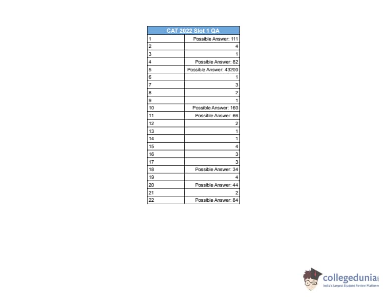 | CAT 2022 QA Slot 1 Question Paper with Answer Key | Download PDF | Check Solutions |