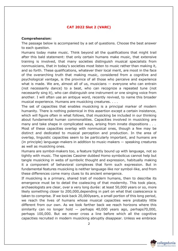 | CAT 2022 VARC Slot 2 Question Paper With Solution PDF | Download PDF | Check Solution |
