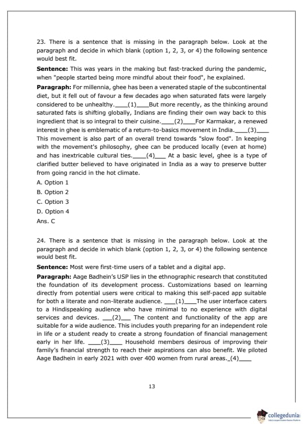 | CAT 2024 Question Papers | CAT 2023 Question Papers |