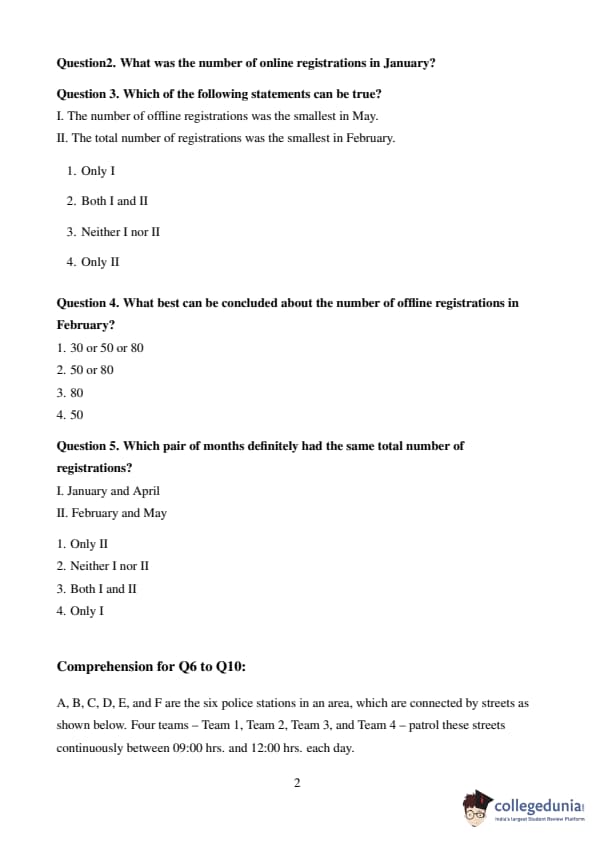 | 3 | Which of the following statements can be true? I. The number of offline registrations was the smallest in May. II. The total number of registrations was the smallest in February. |