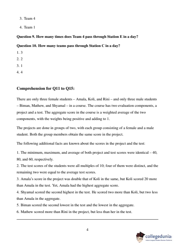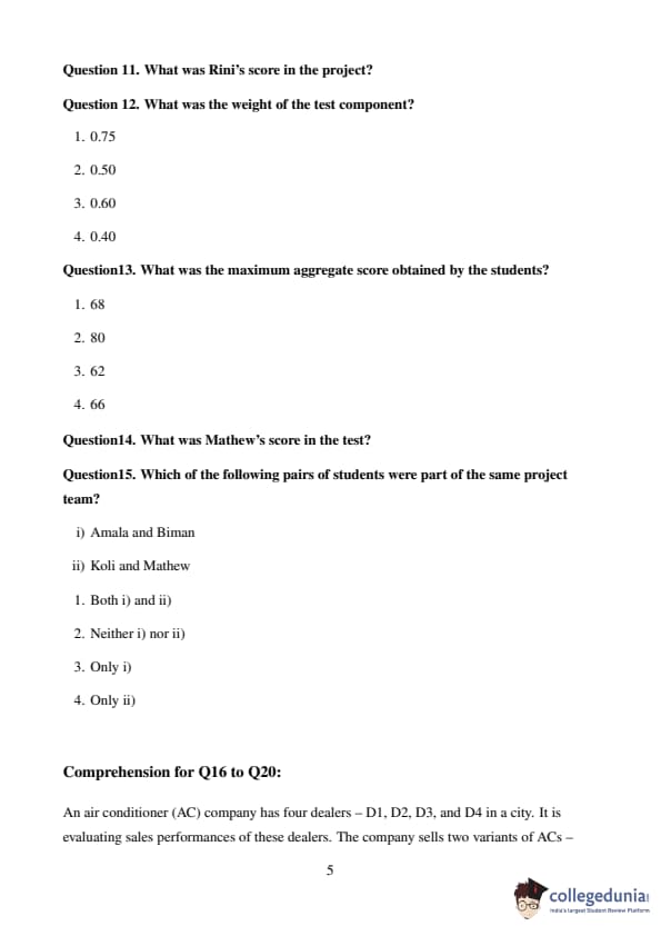 | 15 | Which of the following pairs of students were part of the same project team? i) Amala and Biman ii) Koli and Mathew |