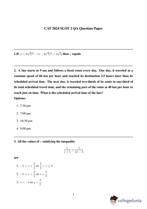 The CAT 2024 Slot 2 Question Paper for Quantitative Ability (QA), along with the answer key and detailed solutions, is now available for download in PDF format. This section, conducted on November 24, 2024, during the 12:30 PM to 2:30 PM time slot, challenged candidates with questions on key mathematical concepts such as arithmetic, algebra, and geometry. With 22 questions contributing to a total of 66 marks, the QA section plays a vital role in shaping the overall exam score. The CAT 2024 slot 2 QA was moderate.