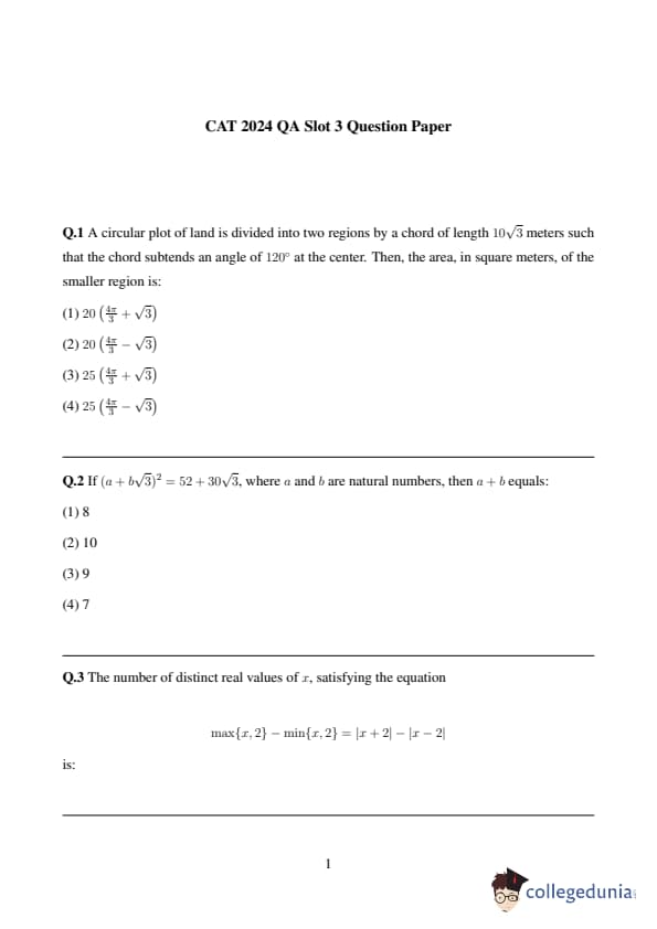 | CAT 2024 Slot 3 QA Question Paper with Answer Key | Check Solutions |