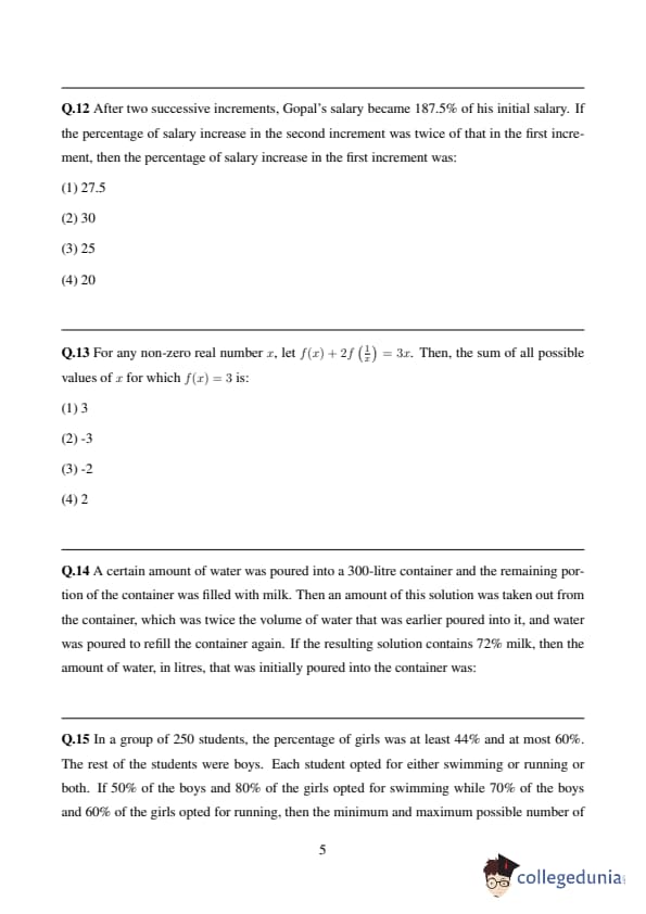 The CAT 2024 Slot 3 Question Paper for Quantitative Ability (QA), along with the answer key and detailed solutions, is now available for download in PDF format. This section, conducted on November 24, 2024, from 4:30 PM to 6:30 PM, tested candidates' skills in mathematics, including topics such as arithmetic, algebra, and geometry. With 22 questions totaling 66 marks, the QA section is an essential part of the exam that can significantly impact a candidate’s overall score