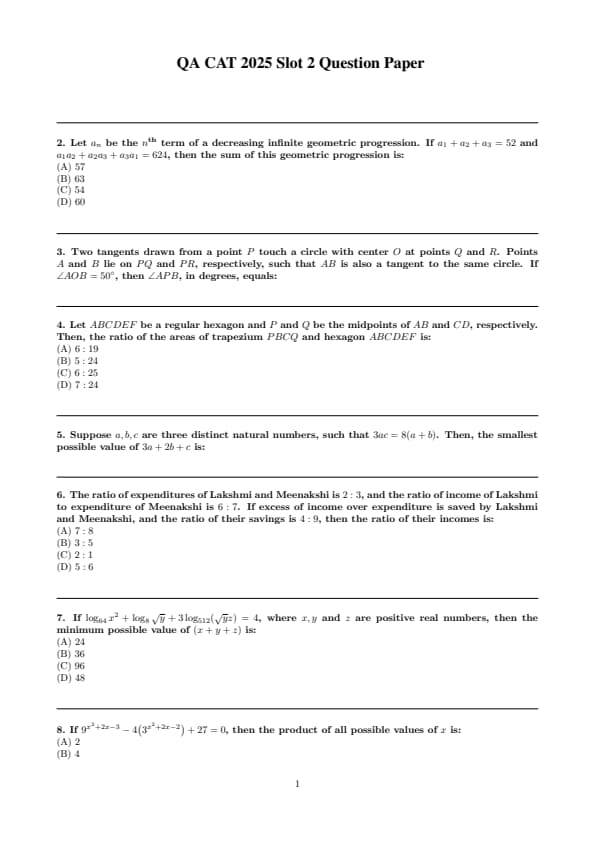 | CAT 2025 Slot 2 QA Question Paper with Solutions PDF | |