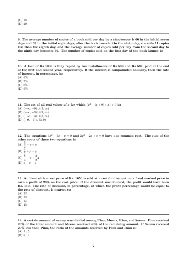 CAT 2025 Slot 2 QA Question Paper with Solutions PDF