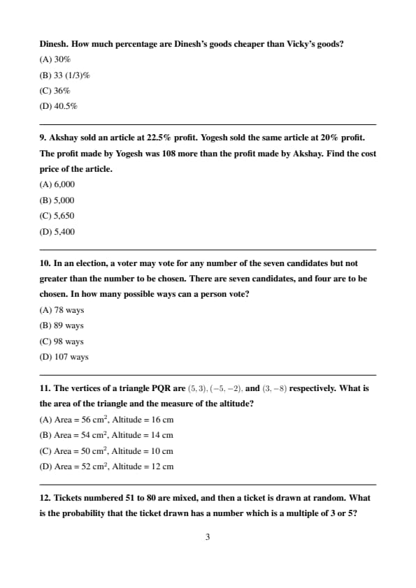 Thus, the cost price of the article is ₹5,000. Quick Tip: In problems involving profit percentage, use the formula: Profit = (Profit Percentage) × (Cost Price). Compare the profits and solve for the cost price.