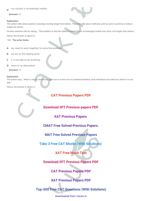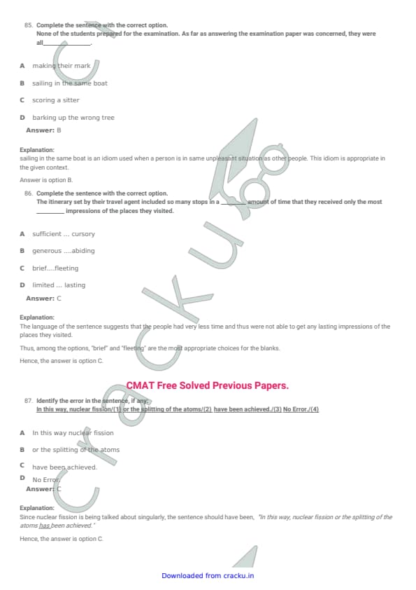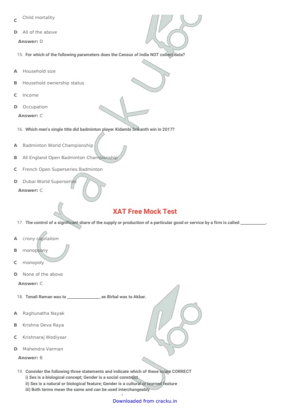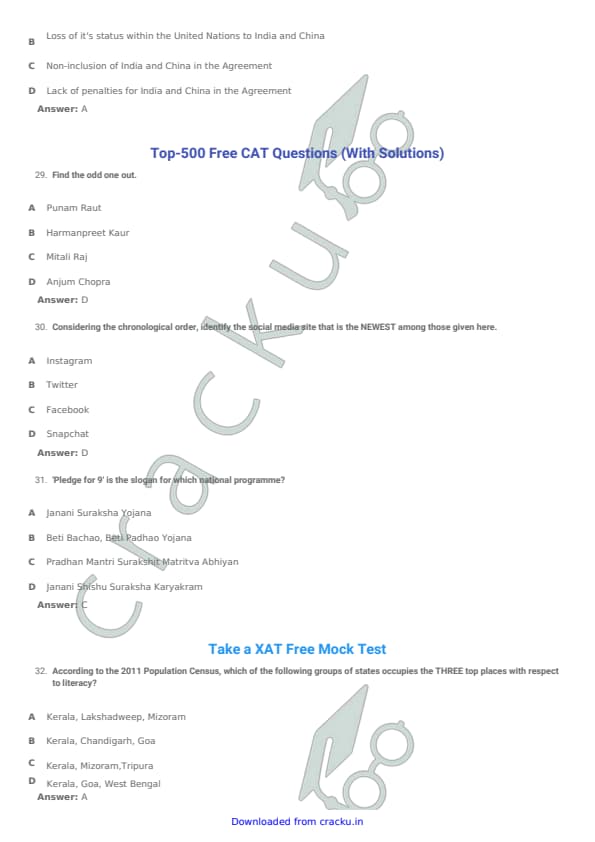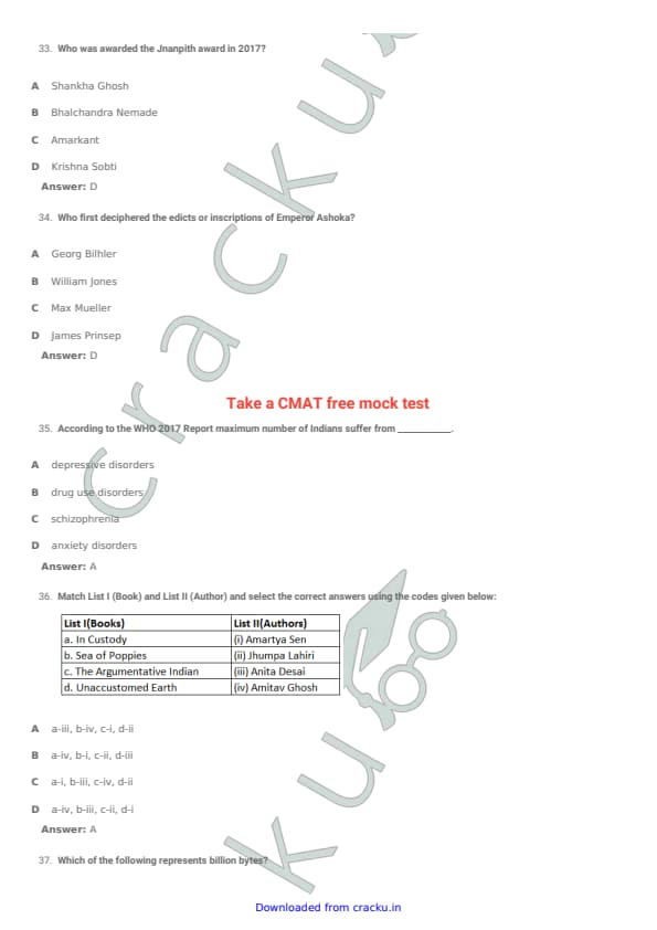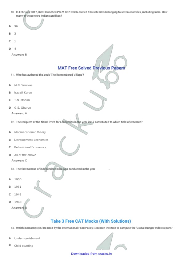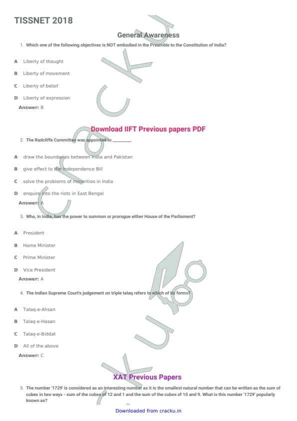 TISSNET 2018 Question paper with answer key pdf conducted on January 6, 2018 is available for download. The exam was successfully organized by Tata Institute of Social Sciences (TISS). The question paper comprised a total of 100 questions. (PDF Source: cracku.in)
