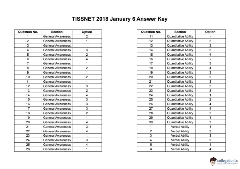 | TISSNET 2018 Question Paper PDF | TISSNET 2018 Answer Key PDF |