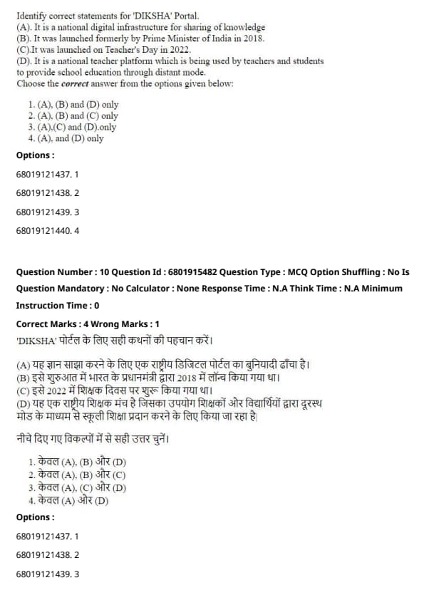 - (D) It helps teachers and students in providing school education through distance mode.