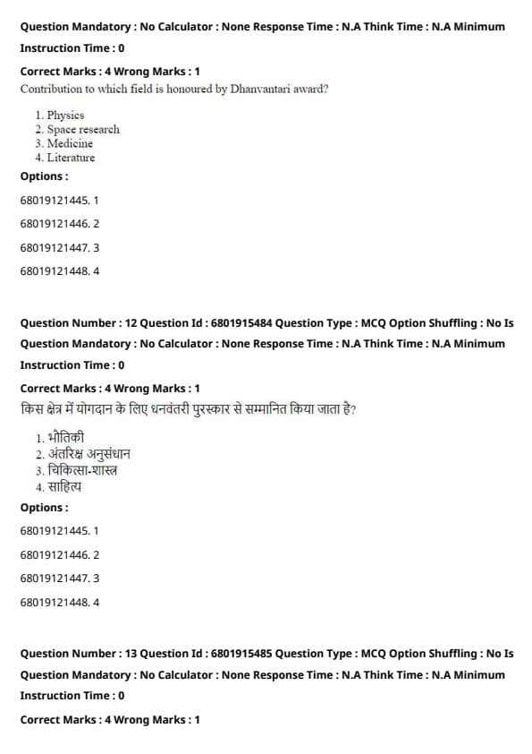 The Dhanvantari Award is given for excellence in the field of Medicine.