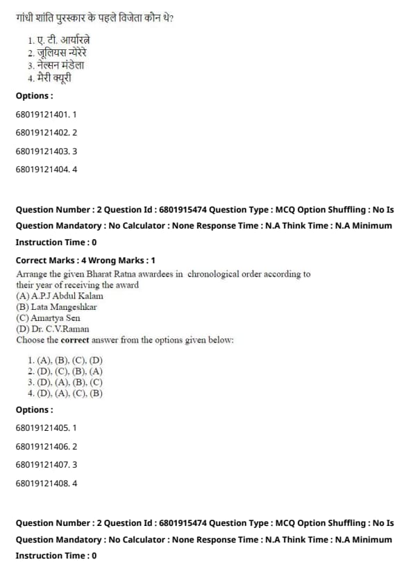 - The chronological order based on year of receiving Bharat Ratna is: