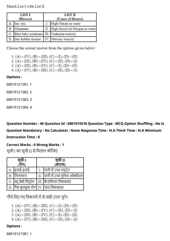 The correct match is (2) (A) - (D), (B) - (II), (C) - (D), (D) - (IV).
