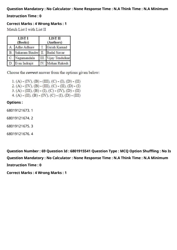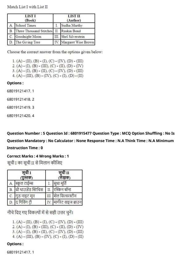 Quick Tip: For author-book matching questions, match famous works to their authors based on literary knowledge.