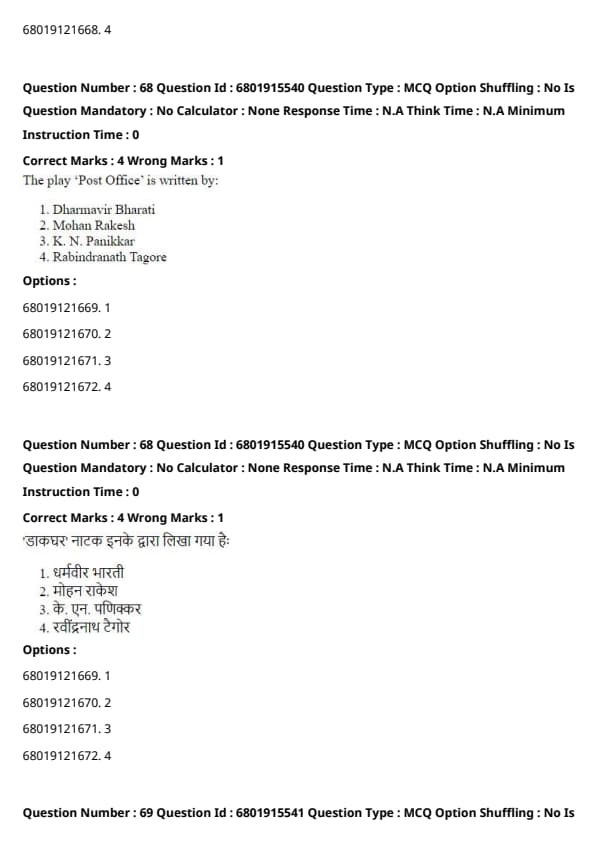 The play ‘Post Office’ is written by:
