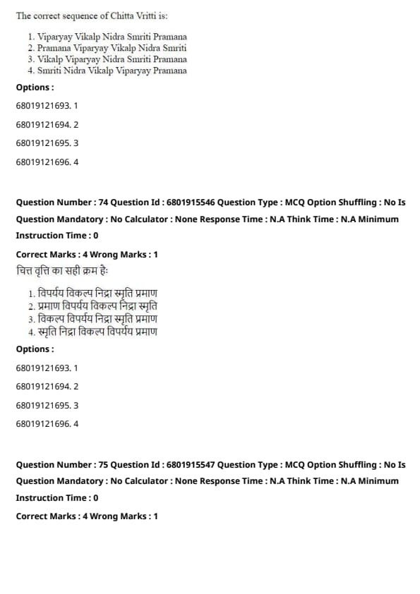 The correct sequence of Chitta Vritti is: