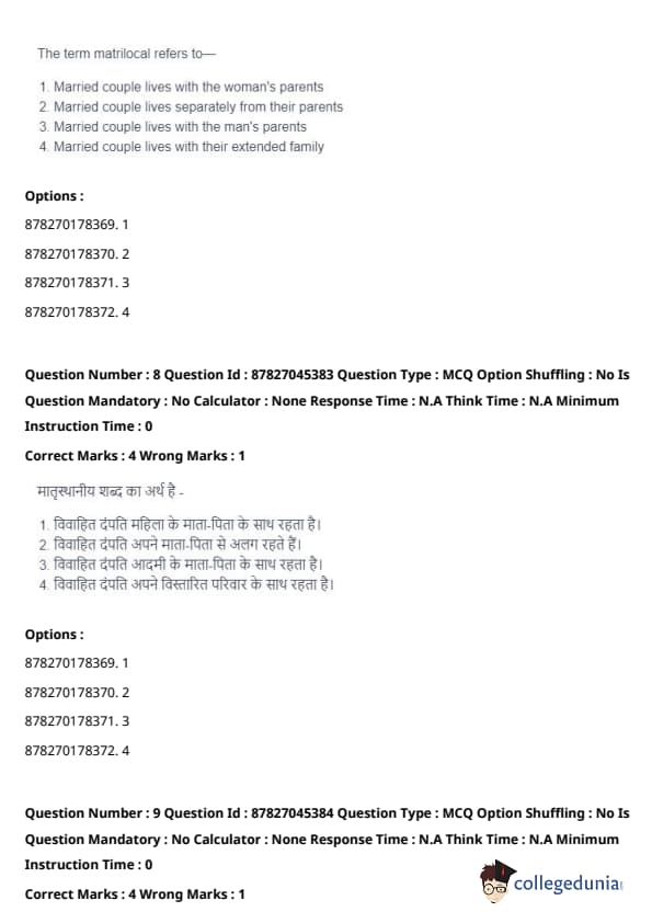 Patrilocal refers to a system where the married couple resides with or near the husband's family, which is a more commonly known pattern. Quick Tip: Understanding different residence patterns like matrilocal and patrilocal can help in exploring how family roles and responsibilities are distributed in various societies.