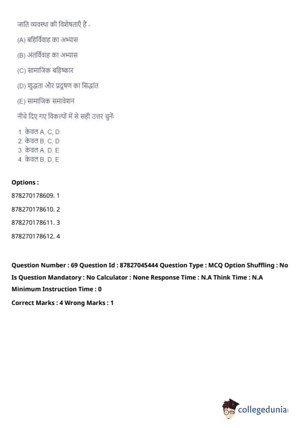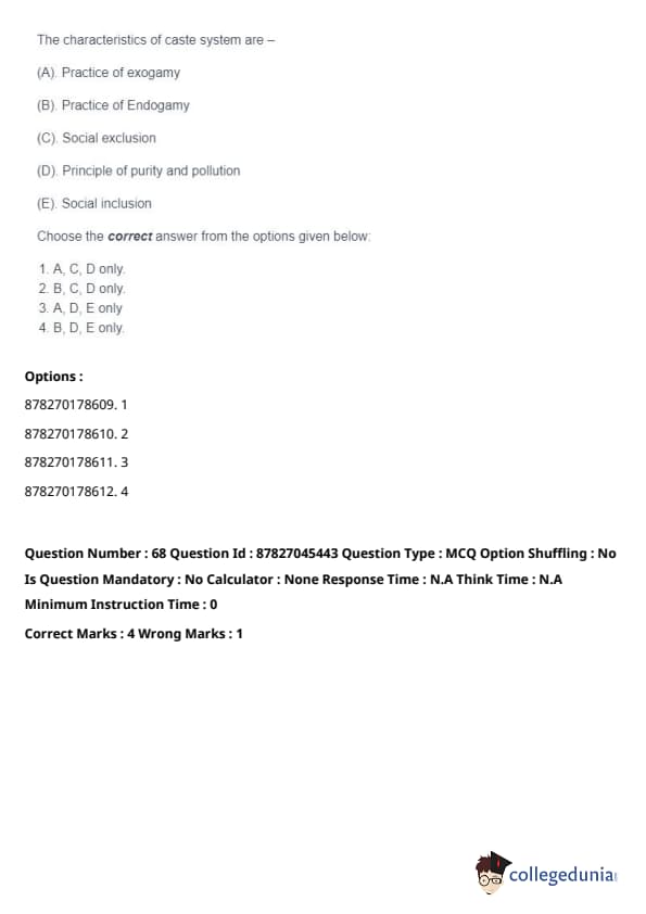 Thus, the correct answer is: (B), (C), and (D) only. Quick Tip: The caste system has deep historical roots in India and continues to shape the social structure, impacting individuals' access to resources, opportunities, and social mobility.