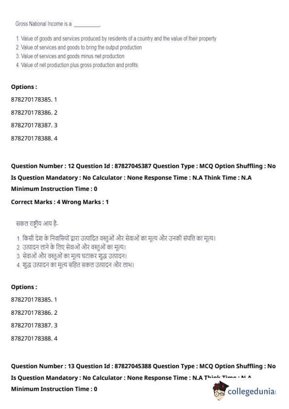 Option (2), (3), and (4) describe other economic measures but do not accurately define GNI. Quick Tip: Gross National Income (GNI) is different from Gross Domestic Product (GDP) in that GNI includes net income from abroad, such as wages, rents, and profits.