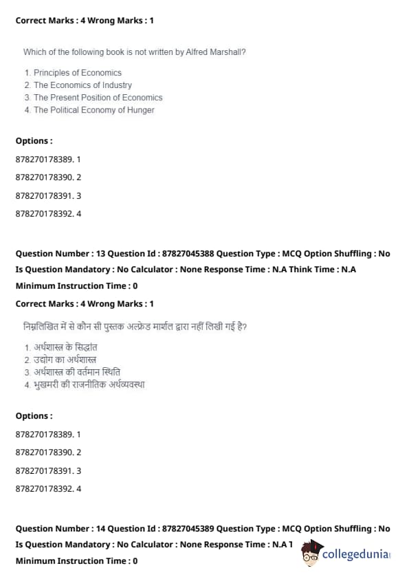 Alfred Marshall was a renowned economist, and he authored several influential works, but "The Political Economy of Hunger" was not written by him. The correct books by Alfred Marshall include: