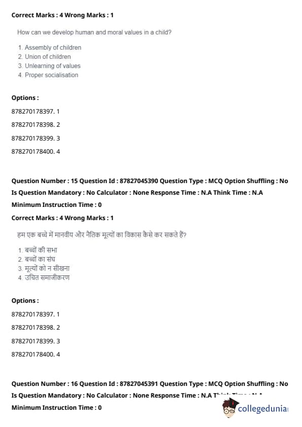The development of human and moral values in a child is primarily influenced by proper socialisation. Socialisation refers to the process by which children learn and internalize the values, norms, and behaviors of their society. This process occurs through interactions with family, peers, teachers, and other social agents. Proper socialisation helps children understand moral principles such as empathy, fairness, and respect for others.