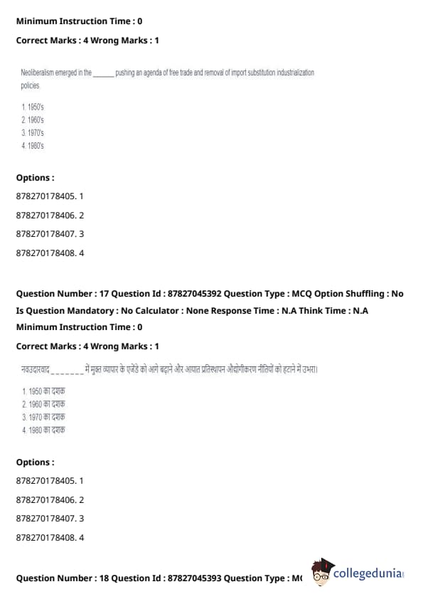The 1950s, 1960s, and 1970s saw more emphasis on state-led economic models, including ISI, rather than the neoliberal approach that began in the 1980s. Quick Tip: Neoliberalism focuses on maximizing market efficiency and reducing the role of the government in economic affairs. It became particularly influential in the 1980s and reshaped global economic policies.