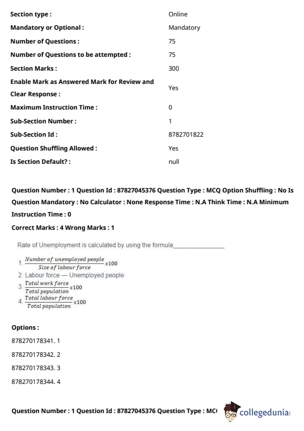 Option (3) and (4) are incorrect as they relate total populations or workforces without considering the number of unemployed people within the labour force specifically. Quick Tip: The unemployment rate is a crucial indicator for assessing the health of an economy. A high rate of unemployment suggests economic inefficiency and underutilisation of the workforce.