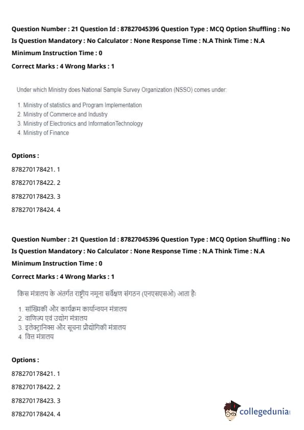 Under which Ministry does National Sample Survey Organization (NSSO) come under?