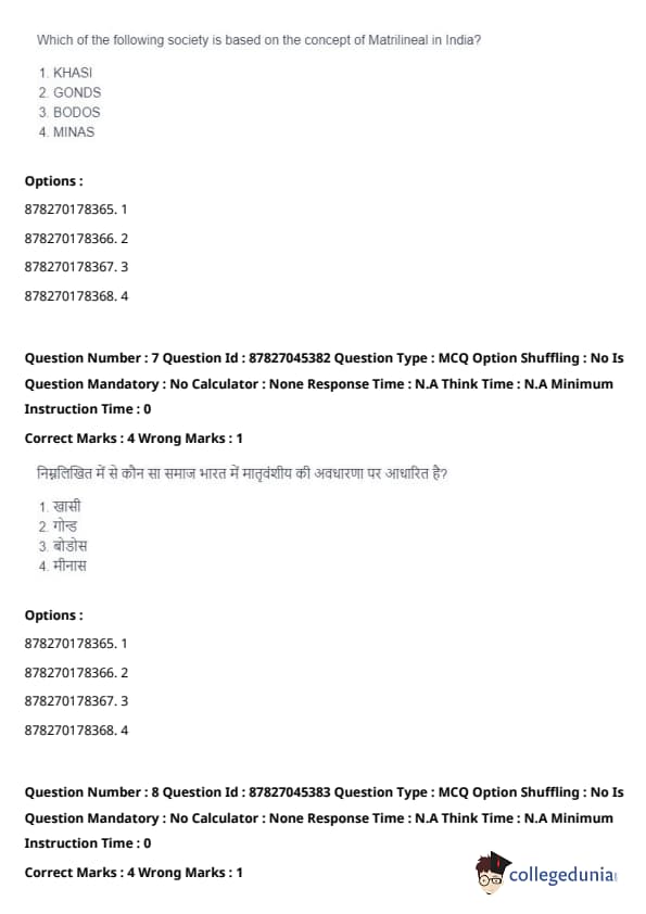 Gonds, Bodos, and Minas are not matrilineal; they follow patrilineal systems, where lineage is traced through the father’s side. Quick Tip: Matrilineal societies like the Khasi offer a unique perspective on kinship, inheritance, and family structures that are different from the more common patrilineal systems.