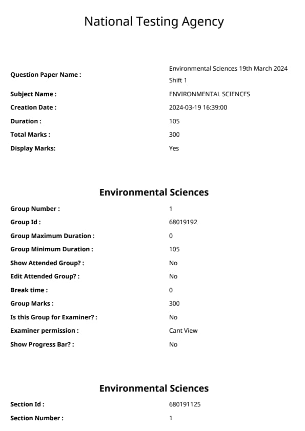 TISSNET Environmental Sciences Question Paper 2024 PDF Download