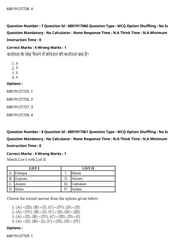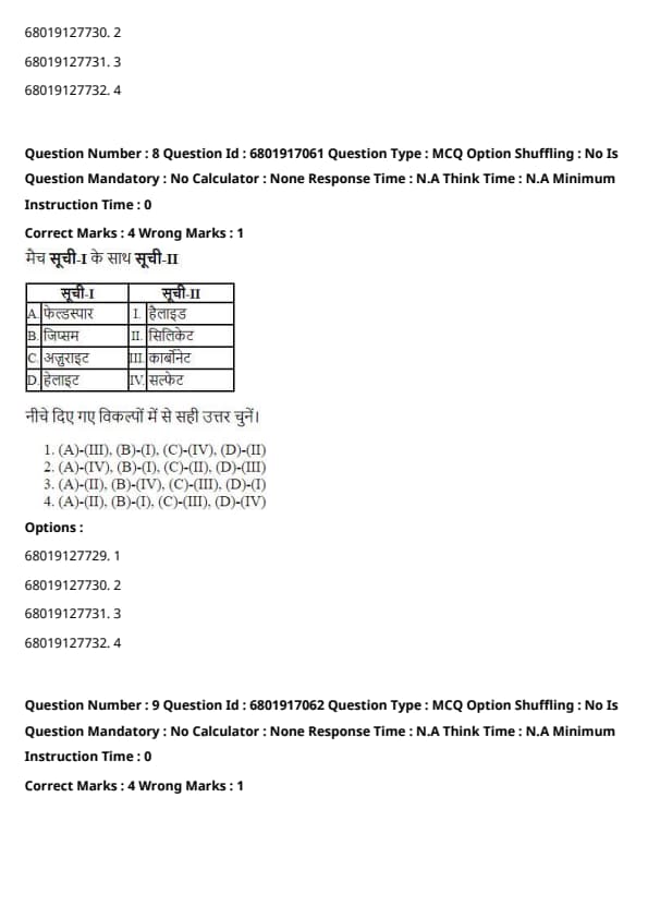 | B. Gypsum | IV. Sulfate |