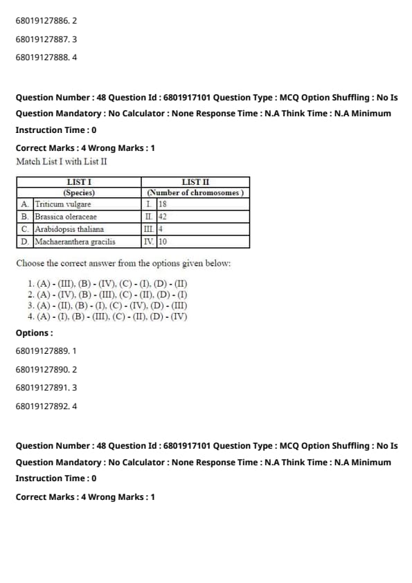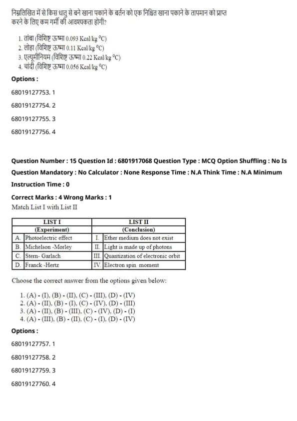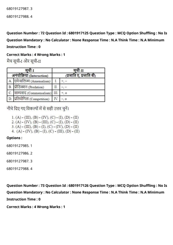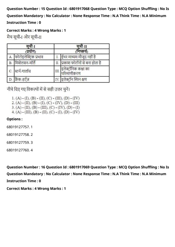 - (A) - (II), (B) - (I), (C) - (III), (D) - (IV)
