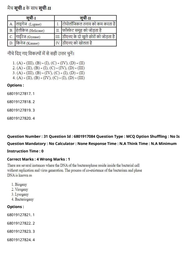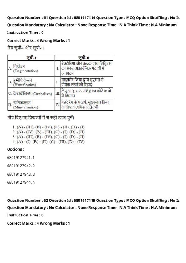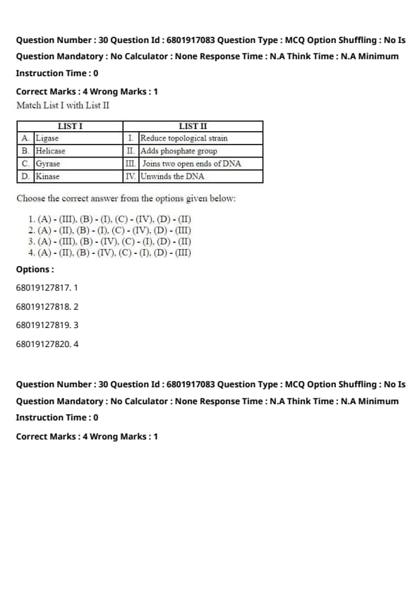 - (A) - (III), (B) - (I), (C) - (IV), (D) - (II)