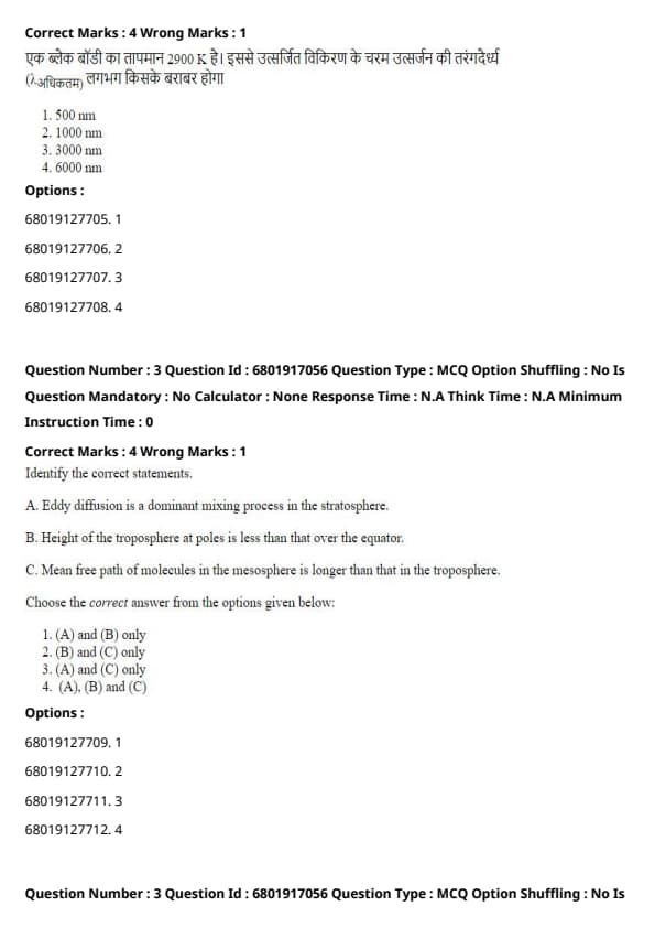 - Statement C is correct: The mean free path of molecules increases with altitude as the air density decreases. Hence, the mean free path in the mesosphere is longer than in the troposphere.