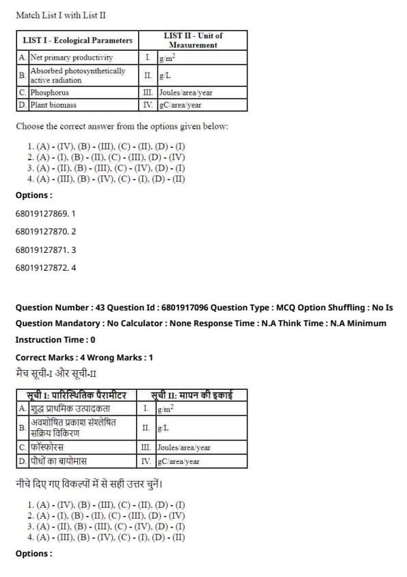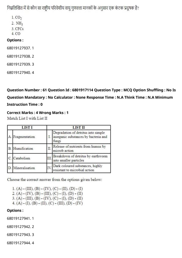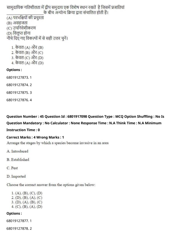 SCQP11 - Environmental Sciences/Studies, Ecology etc.) Question Paper With Solution PDF is available here.