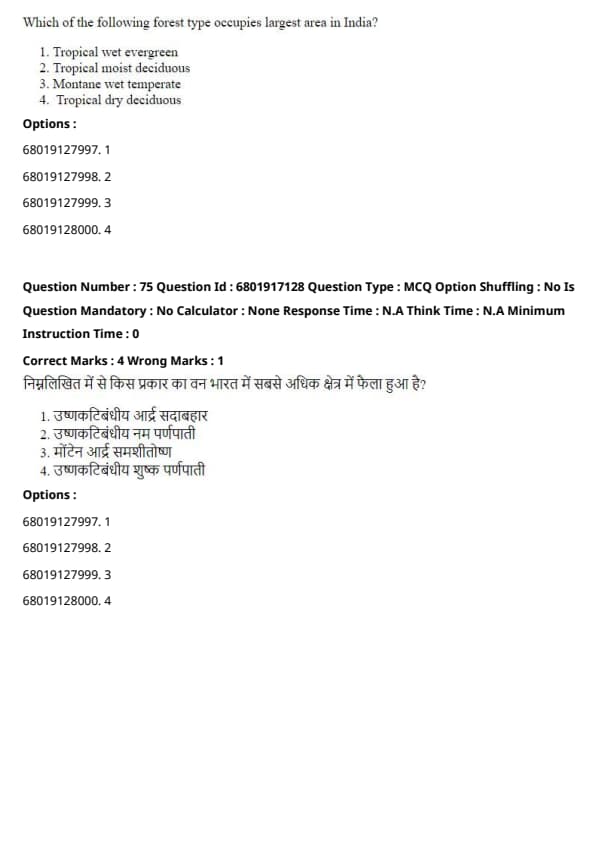 - Tropical moist deciduous forests occupy the largest area in India, followed by tropical dry deciduous forests.