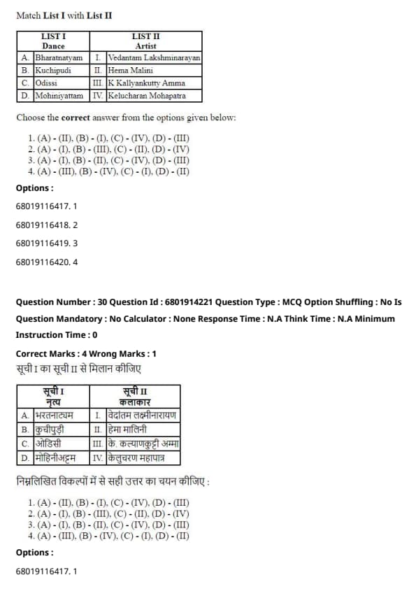 Match List I with List II .