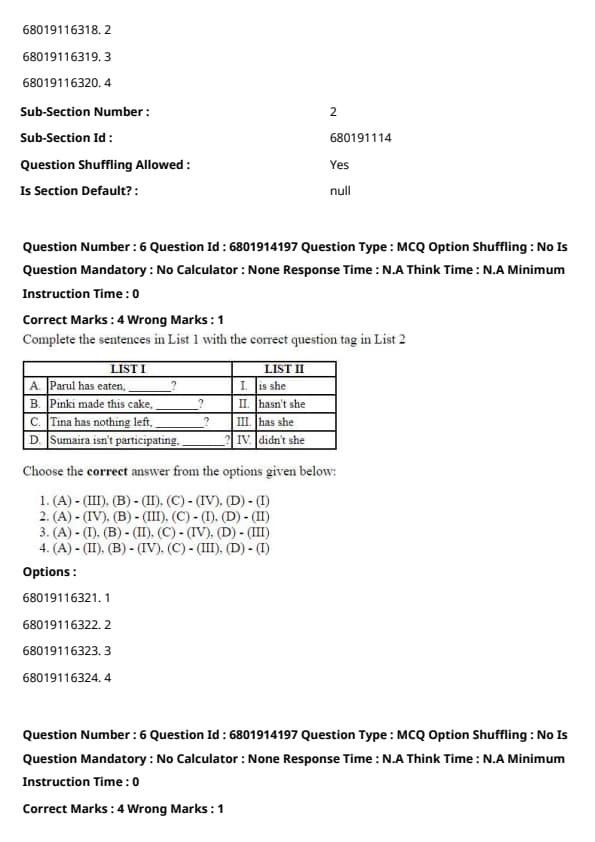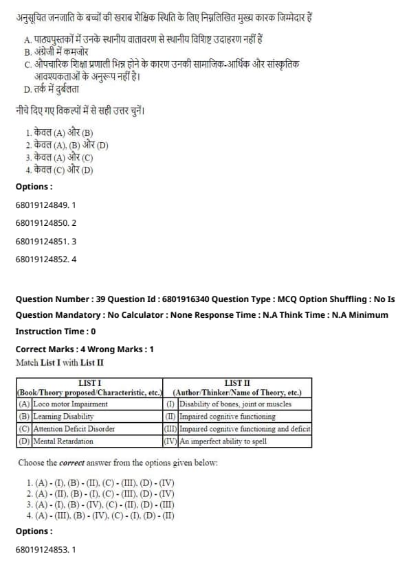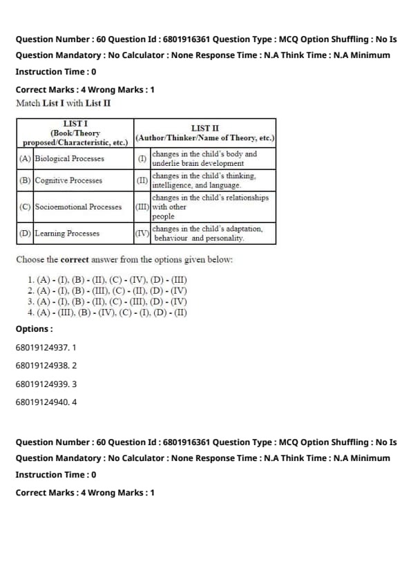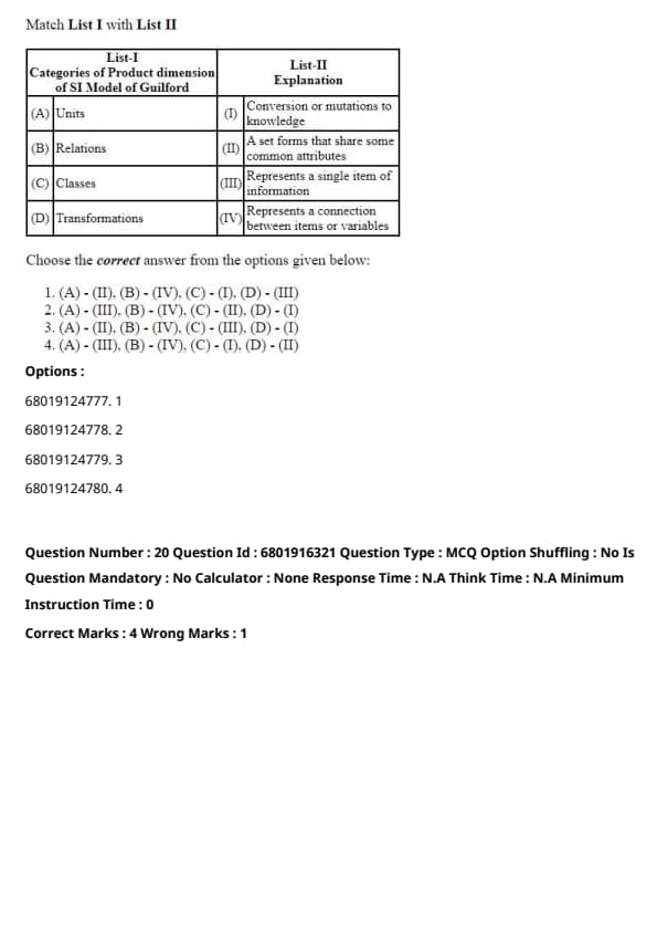 Therefore, the correct answer is 4. (A) - (II), (B) - (III), (C) - (IV), (D) - (I).