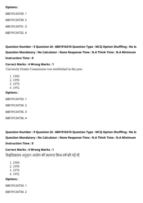 University Grants Commission was established in the year: