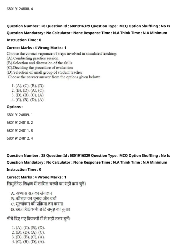 Thus, the correct answer is (4) (C), (D), (A), (B).
