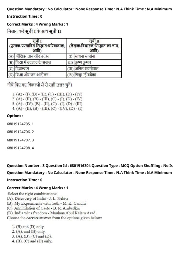 Conclusion: This match involves well-known educational thinkers and their influential works that shaped the Indian educational system.