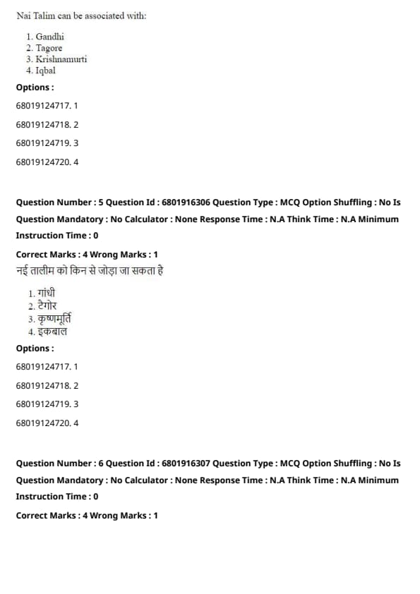 Nai Talim, or the "New Education" system, is associated with Mahatma Gandhi. It emphasizes education through productive work, moral and physical development, and the integration of learning with practical activities.