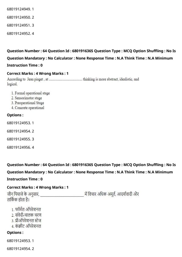 According to Jean Piaget, at .........thinking is more abstract, idealistic, and logical.