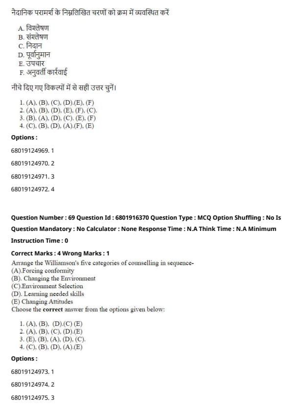 Arrange the Williamson's five categories of counseling in sequence: