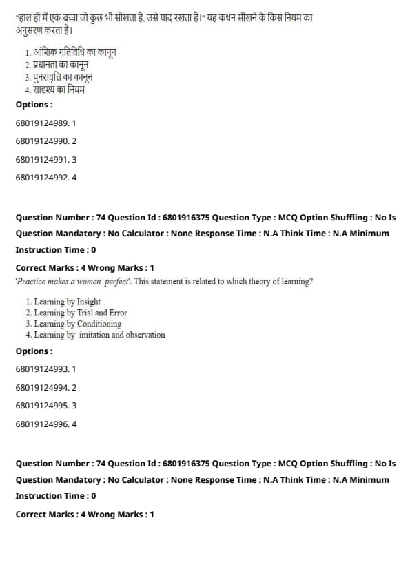 "Practice makes a woman perfect." This statement is related to which theory of learning?