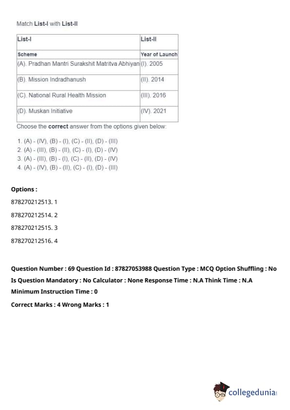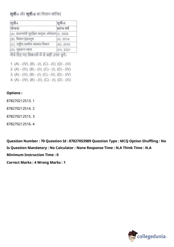 | (C) National Rural Health Mission | (III) 2016 |