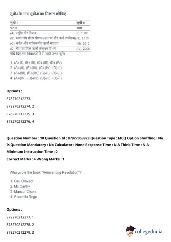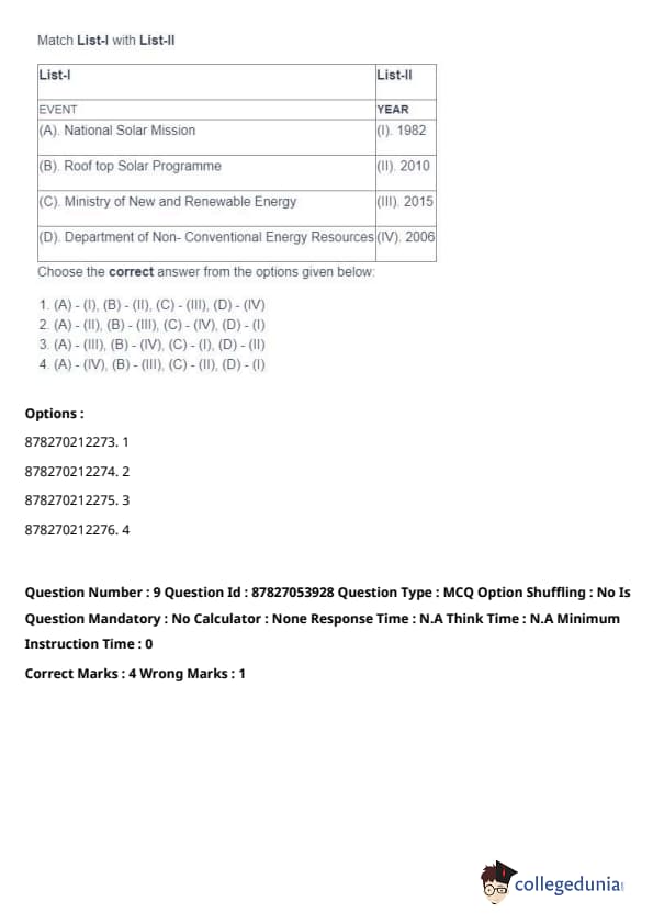 | (A) National Solar Mission | (I) 1982 |